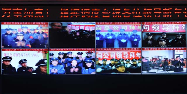 2014年元月31日大年初一早晨7時28分,公司總經(jīng)理婁伯翱、副總經(jīng)理王克、徐文剛以及公司黨總支委員、公司各部負責(zé)人一起慰問了執(zhí)行任務(wù)的武裝押運員,婁伯翱總經(jīng)理代表黨總支向大家拜年并致以節(jié)日的問候和祝福。隨后,公司領(lǐng)導(dǎo)來到公司指揮調(diào)度中心,通過互聯(lián)網(wǎng)視頻連線,代表總公司黨總支慰問了駐外分公司駐浙江慈溪、上海青清、山東濱州、南京大唐、鎮(zhèn)江等地駐外保安隊伍,向他們致以新春的祝福!