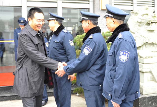 然后,在保安人防管理中心總監(jiān)王錦春陪同下,婁伯翱總經(jīng)理慰問了駐市市財政局、職業(yè)技術(shù)學(xué)校、順泰包裝等人防執(zhí)勤點以及物管公司、銀盾駕校、犬防基地;副總經(jīng)理王克和徐文剛分別驅(qū)車慰問駐山東、南京山東等駐外保安員。當(dāng)天下午,總經(jīng)理婁伯翱將赴浙江慰問駐外保安員。