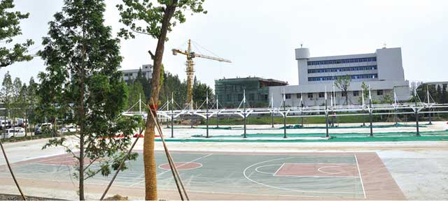 建設(shè)中的辦公樓和停車場一角