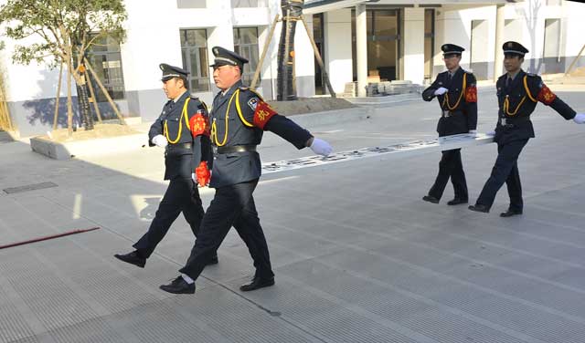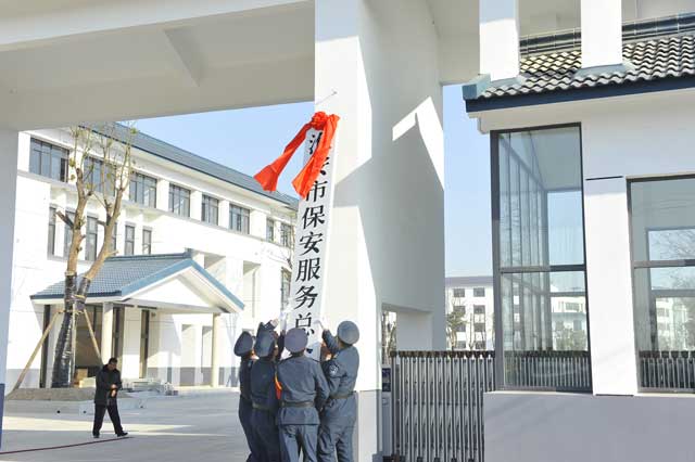 雖然室外氣溫格外寒冷,但這里卻充滿了春天的氣息。上午9時50分,4名禮儀保安抬著一塊披著紅綢的標(biāo)牌, 邁著整齊的步伐走向公司大門,9時58分,江蘇省淮安市保安服務(wù)總公司標(biāo)牌緩緩地、平穩(wěn)地掛了起來,現(xiàn)場響起陣陣鞭炮聲和熱烈的掌聲,大家共同為總公司新址掛牌而歡欣鼓舞。