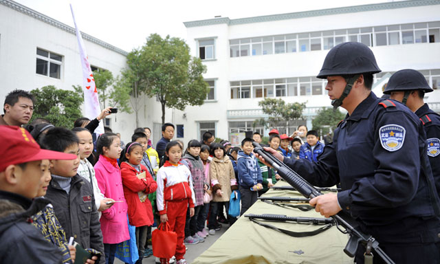 2011年11月19日,淮安日?qǐng)?bào)、淮海晚報(bào)50余名小記者走進(jìn)總公司.小記者們觀看了保安部擒敵技術(shù)表演、押運(yùn)部槍械操表演和槍支分解結(jié)合表演以及警犬表演等。