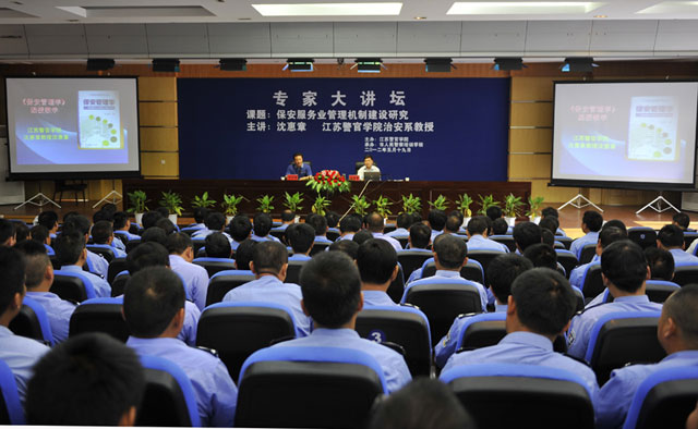 2012年5月19日,江蘇警官學(xué)院教授沈惠章在淮安警官學(xué)院以“保安服務(wù)業(yè)管理機制建設(shè)研究”為內(nèi)容進行了一天的講座,公司保安隊伍和有關(guān)部門骨干近200人聆聽了講座,并針對保安業(yè)情況與沈教授進行了交流和溝通。