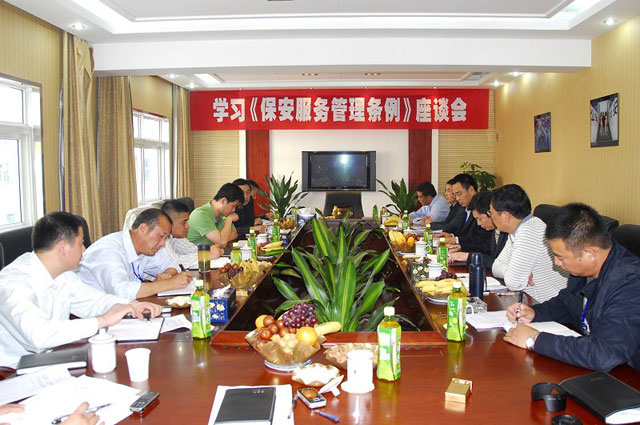 根據(jù)省廳蘇公治(2009)228號(hào)文件關(guān)于組織學(xué)習(xí)《保安服務(wù)管理?xiàng)l例》積極開(kāi)展條例施行準(zhǔn)備工作的通知精神,2009年10月26日下午,省廳治安局和淮安市公安局治安支隊(duì)在總公司會(huì)議室召開(kāi)“學(xué)習(xí)《保安服務(wù)管理?xiàng)l例》座談會(huì)”,總公司和淮陰、楚州、洪澤、金湖、盱眙等縣區(qū)保安服務(wù)公司經(jīng)理和部門(mén)負(fù)責(zé)人17人出席了會(huì)議。與會(huì)人員通過(guò)對(duì)《條例》的充分學(xué)習(xí)和討論,圍繞“《條例》施行前公安機(jī)關(guān)須準(zhǔn)備的工作和保安公司面臨的問(wèn)題以及公安機(jī)關(guān)如何加強(qiáng)保安業(yè)的監(jiān)管”等議題進(jìn)行了深入的討論。