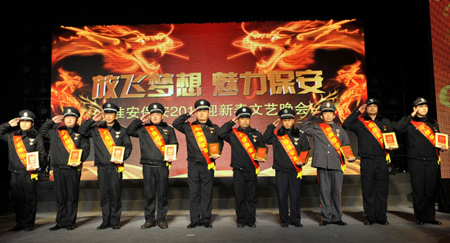2012年元月14日晚,淮安保安2011年度總結(jié)表彰大會在總公司活動中心隆重舉行,公司保安隊伍、押運隊伍和各分公司員工代表700余人參加了會議。