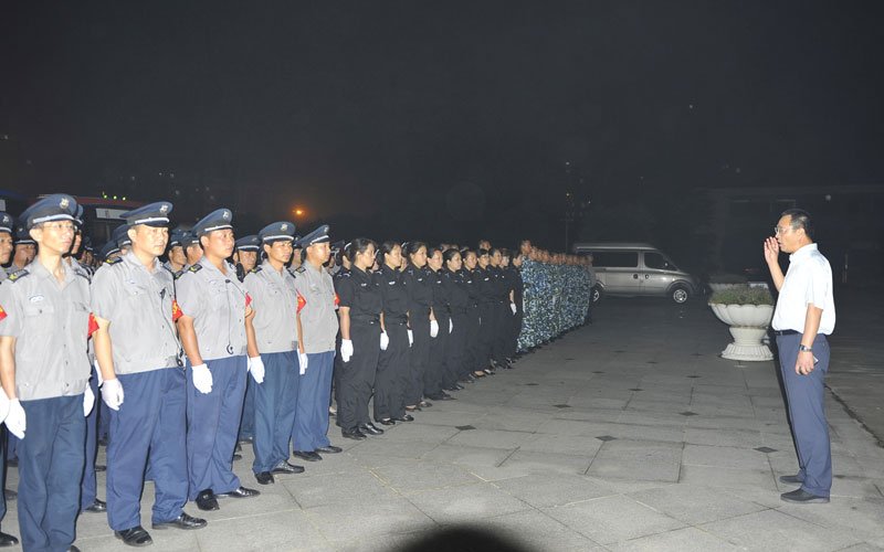 晚會期間,總公司人防中心和押運(yùn)中心等部門共投入700余名保安人員參加安全保衛(wèi)工作,公司總經(jīng)理婁伯翱、副總經(jīng)理王克、徐文剛等領(lǐng)導(dǎo)赴金湖現(xiàn)場組織指揮安保工作。全體執(zhí)勤隊員全力做好現(xiàn)場秩序維護(hù)和人員安檢以及各類突發(fā)事件應(yīng)急處置準(zhǔn)備等工作,圓滿完成了晚會安全保衛(wèi)工作任務(wù),樹立了淮安保安隊伍良好的形象。