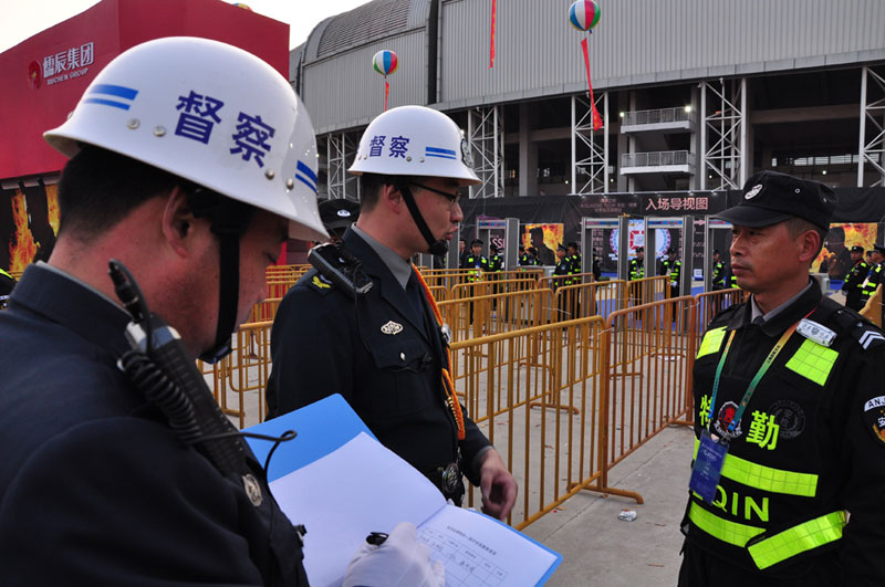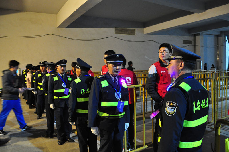 為做好安保工作,11月2日上午,人防中心專門組織參加臨沂安保人員進行專項培訓(xùn)。3日上午7:00集合出發(fā),提前到達臨沂大學(xué),按照承辦方要求,現(xiàn)場搭建300米防爆墻,10個預(yù)檢票口通道,承擔了25000名觀眾入場的安檢、檢票通道的秩序維護等安保任務(wù)。