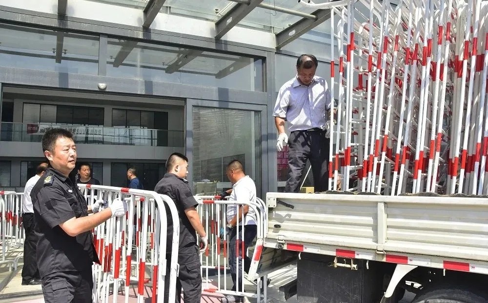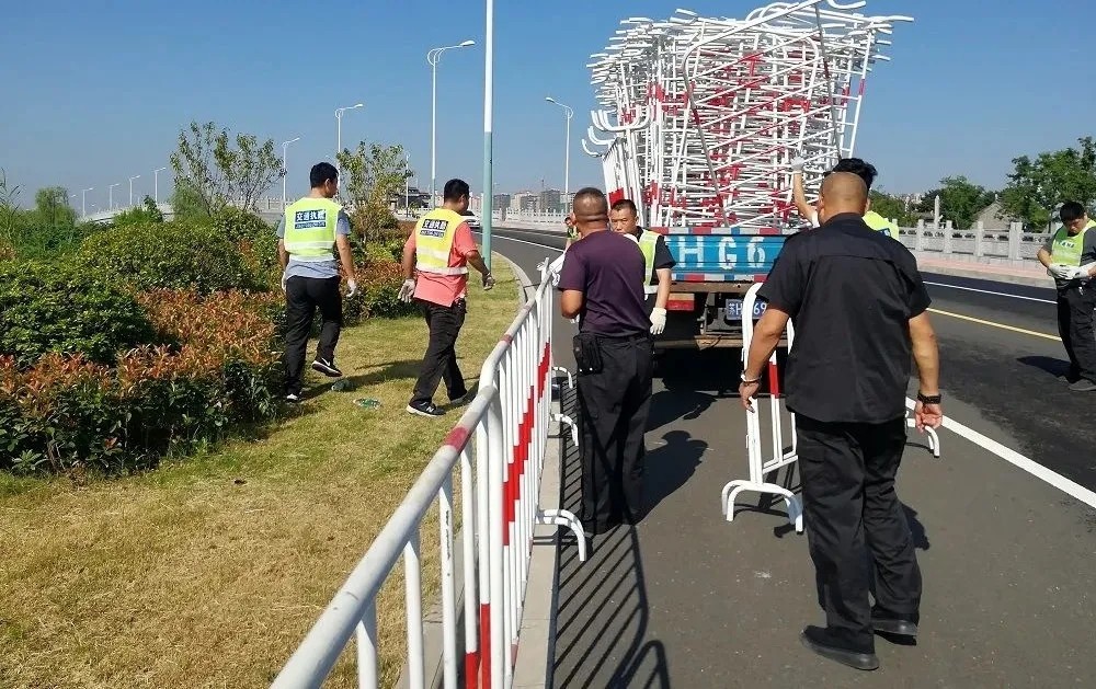 組織對(duì)沿途賽道實(shí)行全封閉,完成13000余米護(hù)欄、鐵馬等隔離設(shè)施的搬運(yùn)、裝卸、擺放。