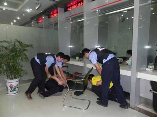 為進(jìn)一步做好押運(yùn)工作,6月30日,德州市在市區(qū)某工商銀行現(xiàn)場(chǎng)開展反搶劫模擬演練。按照方案部署,兩名押運(yùn)隊(duì)員扮演的犯罪分子來(lái)到業(yè)務(wù)窗口說(shuō)要取10萬(wàn)現(xiàn)金,隨后拿出事先準(zhǔn)備好的仿真***和炸藥包逼工作人員把錢交出來(lái),隨后三名押運(yùn)隊(duì)員上前把“犯罪分子”捉拿歸案。此時(shí)現(xiàn)場(chǎng)響起熱烈的掌聲,演練圓滿結(jié)束。