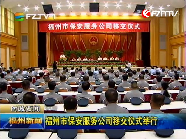 福州市公安局消息 6月4日上午,福州市保安服務(wù)公司交接儀式在市委禮堂舉行。福州市盈瑞投資有限公司正式承接由公安系統(tǒng)剝離出來(lái)的福州市保安服務(wù)公司。市委常委、常務(wù)副市長(zhǎng)陳大強(qiáng),市委常委、政法委書(shū)記陳為民,省公安廳副廳長(zhǎng)、市政府副市長(zhǎng)、市公安局局長(zhǎng)徐凡新,省公安廳治安管理總隊(duì)政委、省保安協(xié)會(huì)副會(huì)長(zhǎng)張德雨,市局黨委委員、副局長(zhǎng)鄭雷聲以及市政府相關(guān)部門(mén)領(lǐng)導(dǎo)出席現(xiàn)場(chǎng)移交儀式。