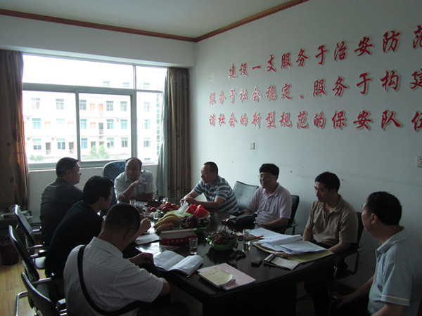 建甌市公安局消息(通訊員 毛志華) 2012年7月17日,全省保安工作交叉檢查組一行深入建甌藍盾保安公司開展保安服務(wù)工作專項檢查。座談會上,該公司總經(jīng)理張建輝首先對藍盾保安公司貫徹落實省廳、市局有關(guān)開展保安企業(yè)改制、保安服務(wù)市場清理整治專項行動的工作情況進行了詳細匯報。檢查組要求藍盾保安公司年底要完成四個百分百,一是改制要100%完成,二是信息采集率要達到100%,三是保安員持證上崗率達100%,四是換裝完成100%。