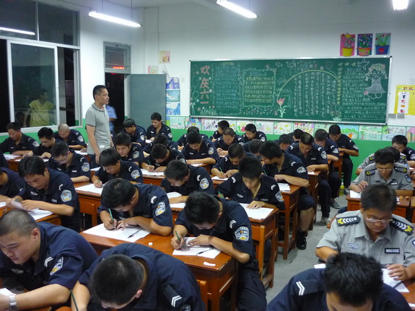 (上圖)初、中級(jí)保安員理論考試在南安市實(shí)驗(yàn)小學(xué)分校舉行,同考室試卷分A、B、C三套卷同時(shí)開考。
