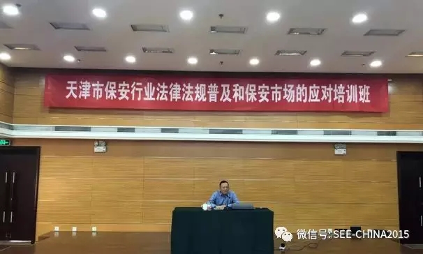 上午9:30,培訓(xùn)正式開始,首先是天津市公安局保安業(yè)監(jiān)管處俞江副處長主講《企業(yè)提升發(fā)展及保安市場的應(yīng)對(duì)》。俞江副處長為與會(huì)人員講解了天津市保安服務(wù)業(yè)現(xiàn)狀以及我市保安服務(wù)行業(yè)存在的十大問題:一、公司數(shù)量激增,市場競爭愈發(fā)激烈;二、外埠公司涌入,市場份額受到侵占;三、經(jīng)濟(jì)形勢(shì)下滑,保安市場縮水嚴(yán)重;四、稅費(fèi)改革實(shí)行,公司負(fù)擔(dān)日趨嚴(yán)重;五、低價(jià)競爭嚴(yán)峻,企業(yè)運(yùn)營進(jìn)退兩難;六、服務(wù)方式單一、企業(yè)發(fā)展動(dòng)力不足;七、管理手段缺乏,保安服務(wù)參差不齊;八、技能培訓(xùn)不足,保安素質(zhì)需要加強(qiáng);九、保安流動(dòng)性大,隊(duì)伍穩(wěn)定難題待解;十、保安來源不一,整體形象有待提高。根據(jù)我市保安服務(wù)行業(yè)存在的以上問題,俞江副處長給予了應(yīng)對(duì)措施,指明了保安服務(wù)行業(yè)發(fā)展的方向:一是,依法依規(guī)開展保安服務(wù)經(jīng)營活動(dòng);二是,拓寬保安服務(wù)渠道從單一人力向科技轉(zhuǎn)換;三是,保安服務(wù)企業(yè)要立足本市邁向全國走向海外;四是,保安服務(wù)企業(yè)要依法經(jīng)營內(nèi)強(qiáng)素質(zhì)外樹形象。并要求各保安服務(wù)企業(yè)要做到:嚴(yán)格遵守國家有關(guān)保安監(jiān)管、勞動(dòng)就業(yè)、稅收、社會(huì)保險(xiǎn)、政府采購、招投標(biāo)等法律法規(guī),堅(jiān)決依法依規(guī)開展保安服務(wù)活動(dòng);確保在國家規(guī)定的經(jīng)營范圍內(nèi)開展保安服務(wù)活動(dòng);嚴(yán)格遵循保安員全員持證上崗,特殊技能崗位工作的保安員必須經(jīng)專業(yè)培訓(xùn)持證上崗;加強(qiáng)對(duì)各級(jí)管理崗位以及全體保安員的教育、管理和培訓(xùn),提升管理能力和服務(wù)水平,用優(yōu)質(zhì)服務(wù)占領(lǐng)市場;不斷加強(qiáng)器材、裝備、服裝以及科技等方面的投入,用良好的形象展示新時(shí)代保安服務(wù)行業(yè)的形象。