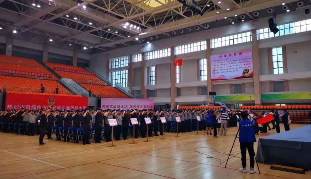 8月21日,2019年度揚(yáng)州市保安員職業(yè)技能大賽開幕式暨建國70周年大慶安保誓師大會(huì)在揚(yáng)州職業(yè)大學(xué)體育館隆重舉行,活動(dòng)由市公安局、市人社局、市總工會(huì)、團(tuán)市委聯(lián)合舉辦。