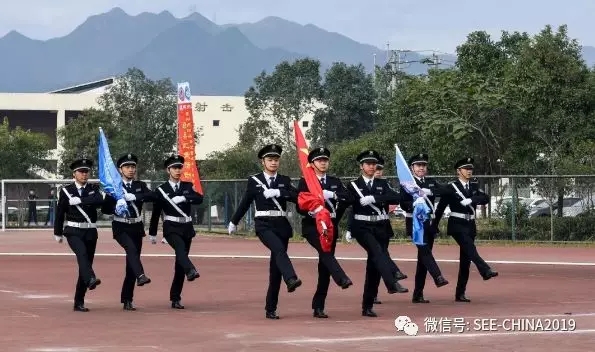 開幕式上,溫州市保安服務總公司作為此次活動的冠名單位,表演國旗入場與升旗儀式。當護旗手昂首挺胸,邁著堅定的步伐,踏過嶄新的跑道,一路護送國旗走向主席臺,伴隨著慷慨激昂的《義勇軍進行曲》,五星紅旗冉冉升起,正式拉開了技能競賽活動的序幕,極大地鼓舞了隊員們的參賽士氣。