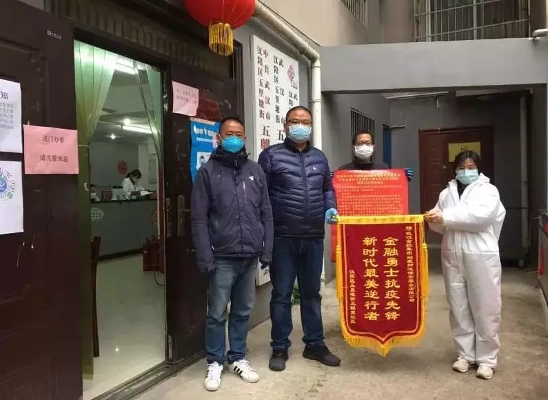 3月8日,漢陽(yáng)區(qū)五里墩街五麒里社區(qū)向融威公司抗疫一線值守人員贈(zèng)送感謝信和錦旗