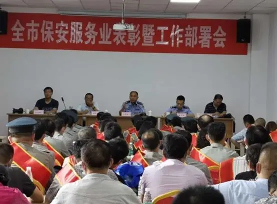 近日,馬鞍山市公安局保安管理支隊(duì)、市保安行業(yè)協(xié)會(huì)在金江保安學(xué)校召開全市保安管理暨表彰工作會(huì)議,表彰獎(jiǎng)勵(lì)2019年表現(xiàn)優(yōu)秀的保安公司和保安員并部署下半年保安管理工作。保安管理支隊(duì)全體民警、市保安協(xié)會(huì)負(fù)責(zé)人、全市保安從業(yè)單位負(fù)責(zé)人及獲獎(jiǎng)代表等100余人參加了這次會(huì)議。