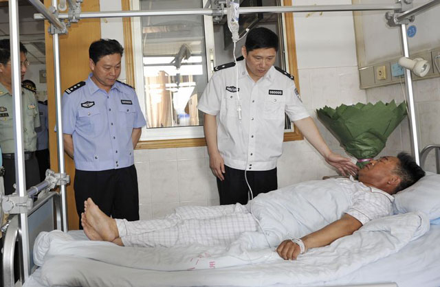 7月30日上午,市公安局徐乾副局長(zhǎng)在交巡警支隊(duì)蘇必偉支隊(duì)長(zhǎng)和公司婁伯翱總經(jīng)理等領(lǐng)導(dǎo)的陪同下,到八二醫(yī)院看望慰問了因公負(fù)傷的我公司保安四大隊(duì)交通協(xié)管員孫長(zhǎng)如,并送上了慰問金。