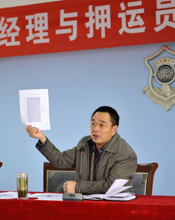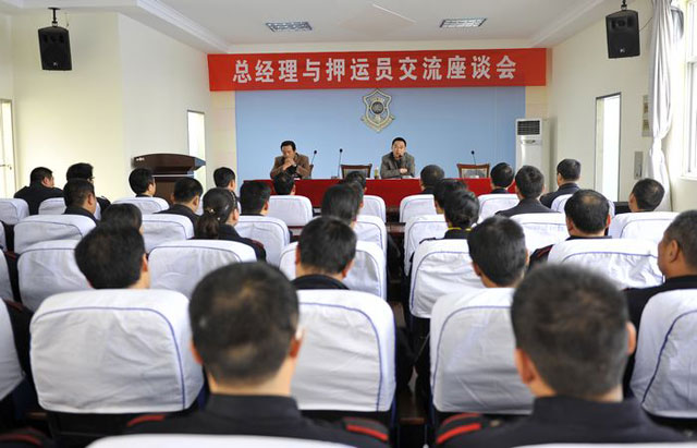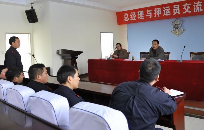 為了進(jìn)一步加強(qiáng)守護(hù)押運(yùn)隊(duì)伍管理,適時(shí)掌握一線隊(duì)員的思想動(dòng)態(tài),2010年11月27日上午, 公司在押運(yùn)中心三樓召開了“總經(jīng)理與押運(yùn)員面對(duì)面交流座談會(huì)”。押運(yùn)中心市區(qū)全體守押人員、縣區(qū)押運(yùn)員代表和公司各部門負(fù)責(zé)人及機(jī)關(guān)部分員工160余人參加了會(huì)議。