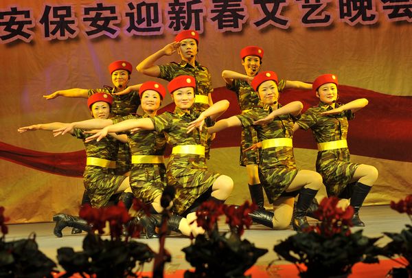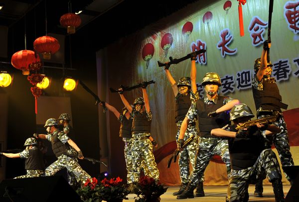 整場晚會,都是各部門員工自編自演,以自娛自樂為主。機(jī)關(guān)女職工帶來的舞蹈《印度新娘》,用優(yōu)美的舞姿展示了她們昂揚(yáng)向上的精神風(fēng)貌。保安部編排的節(jié)目《鬧春》則另辟蹊徑,八位由小伙子反串的老太太步履蹣跚卻充滿風(fēng)趣,將那一份喜迎新春的歡樂散播到每一個人身上。機(jī)關(guān)男職工編排的舞蹈《窮開心》和劍蘭賓館的女員工的《拉丁舞》也博得滿堂喝彩。武裝押運(yùn)中心的舞蹈《當(dāng)祖國召喚的時候》將晚會推向了一個高潮,十位頭戴鋼盔、身著迷彩服、手持鋼槍的押運(yùn)隊(duì)員邁著鏗鏘有力的步伐宣誓他們的忠誠與剛毅,展現(xiàn)了武裝押運(yùn)員的風(fēng)采和雄姿。