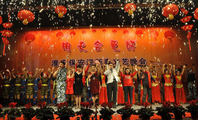 市公安局治安支隊(duì)副支隊(duì)長、總公司總經(jīng)理婁伯翱為晚會致辭,并代表淮安保安全體職工向關(guān)心支持保安工作的局領(lǐng)導(dǎo)和社會各界表示衷心地感謝!向長期以來奮戰(zhàn)在一線的保安戰(zhàn)友們表示親切地慰問!向一直以來默默支持淮安保安事業(yè)的員工家屬表示崇高的敬意和新春的祝福!