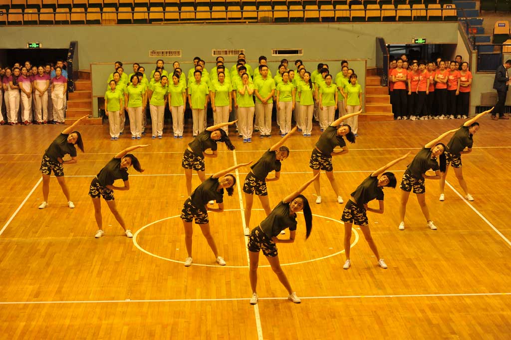 在此次活動(dòng)中,所有人員充分發(fā)揮了不怕苦、不怕累的精神,積極參與排練,刻苦訓(xùn)練,最終獲得了殊榮。由于時(shí)間緊,任務(wù)重,接到通知時(shí)已臨近比賽,從各部門人員抽調(diào)到排練只用了一個(gè)星期。所有人員都是初次接觸第九套廣播操,所有動(dòng)作都是第一次學(xué)習(xí)。人多動(dòng)作復(fù)雜難以整齊劃一。為了達(dá)到整齊劃一的標(biāo)準(zhǔn)動(dòng)作,帶隊(duì)崔主任帶領(lǐng)大家一遍又一遍的練習(xí)。從早晨8點(diǎn)一直到晚8點(diǎn),期間,所有人員克服了種種困難,訓(xùn)練場(chǎng)流下了淚水與汗水。