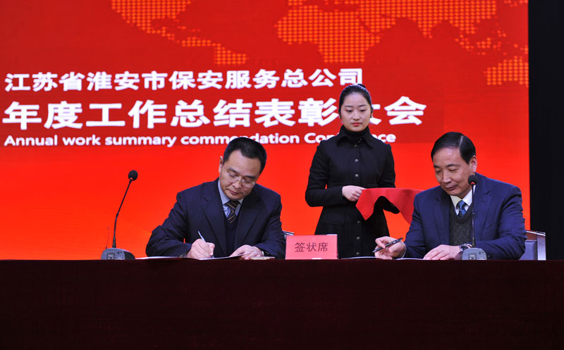 會(huì)議通過(guò)多媒體工作報(bào)告對(duì)淮安保安2016年度工作進(jìn)行了總結(jié),表彰了年度工作突出的先進(jìn)集體和先進(jìn)個(gè)人,對(duì)公司2017年度工作進(jìn)行了部署。婁伯翱總經(jīng)理代表總公司與押運(yùn)管理中心、人防管理中心、駐外分公司等13個(gè)部門簽署了2017年度目標(biāo)責(zé)任狀。
