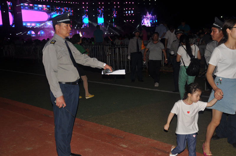 6月初,人防中心王錦春總監(jiān)牽頭部門的大型活動安保小組積極與主辦方溝通聯(lián)絡(luò),多次到金湖與當(dāng)?shù)毓矙C關(guān)、主辦方溝通協(xié)調(diào)安保方案,實地踏勘現(xiàn)場,參與多方協(xié)調(diào)會,查找安保工作中困難出現(xiàn)的隱患,精心組織安檢、外圍停車場守護(hù)、預(yù)檢票口、檢票口、內(nèi)場方陣秩序維持,演員駐地值守等各崗位部署。確保演唱會順利有效安全進(jìn)行。