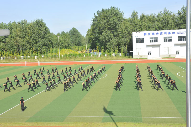 2015、2016、2017三屆保安學(xué)員共198名學(xué)生進(jìn)行了隊(duì)列和擒敵技術(shù)等技能展示,學(xué)生隊(duì)伍邁著整齊劃一的步伐,矯健有力,擒敵拳鏗鏘有力,動(dòng)作整齊。充分展現(xiàn)了保安專業(yè)過(guò)硬的專業(yè)素質(zhì)與豪邁的精神面貌,使在場(chǎng)的師生和家長(zhǎng)人員發(fā)出陣陣驚嘆,掌聲與歡呼聲不絕于耳。
