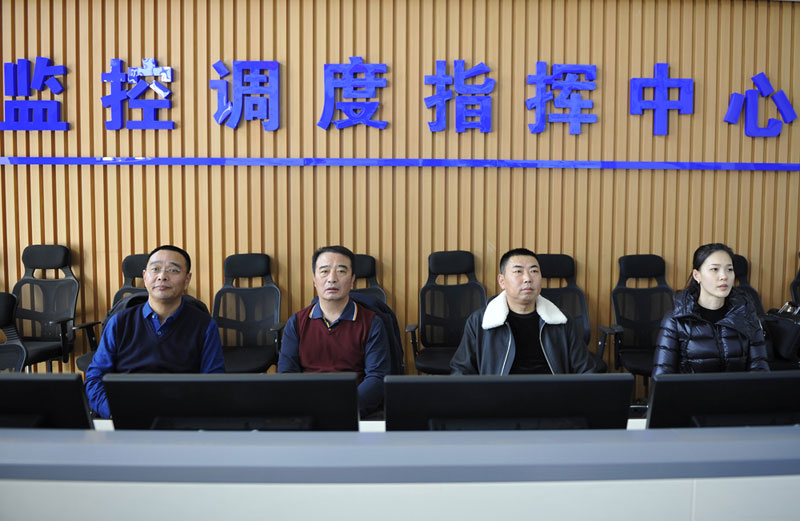 黃秘書(shū)長(zhǎng)在公司監(jiān)控調(diào)度指揮中心聽(tīng)取全國(guó)“雪亮工程”建設(shè)情況匯報(bào)