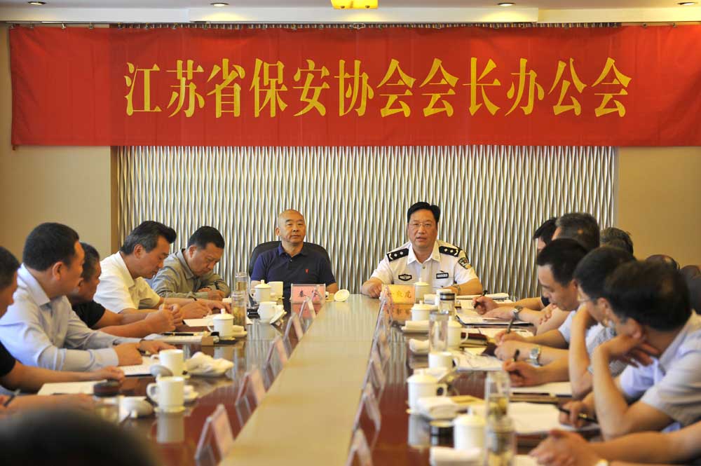 2018年5月15日上午,江蘇省保安協(xié)會(huì)會(huì)長(zhǎng)辦公會(huì)在南京召開(kāi),省公安廳治安總隊(duì)、省保安協(xié)會(huì)有關(guān)領(lǐng)導(dǎo)和各副會(huì)長(zhǎng)單位負(fù)責(zé)人參加了會(huì)議??偣緤洳靠偨?jīng)理參會(huì)并報(bào)告了安全技術(shù)防范專業(yè)委員會(huì)籌備工作情況。