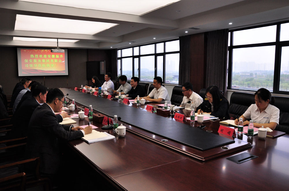 4月21日,安徽振升保安集團(tuán)董事長、書記竇開宏帶領(lǐng)各分管領(lǐng)導(dǎo)、部門負(fù)責(zé)人及員工代表一行50余人蒞臨總公司考察交流,總公司董事長婁伯翱、總經(jīng)理趙愛忠率領(lǐng)行政管理中心、人防中心、駐外分公司、科技分公司、銀盾技防公司等部門負(fù)責(zé)人參與座談交流。