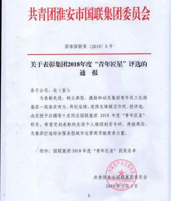 為紀(jì)念“五四”運(yùn)動(dòng)100周年,進(jìn)一步繼承和發(fā)揚(yáng)“五四”精神,表彰先進(jìn)、樹立典型,激勵(lì)和動(dòng)員青年員工扎根一線奮發(fā)有為、再創(chuàng)佳績(jī),發(fā)揮先鋒模范作用,國(guó)聯(lián)集團(tuán)決定授予十名同志2018年度“青年匠星”稱號(hào)。