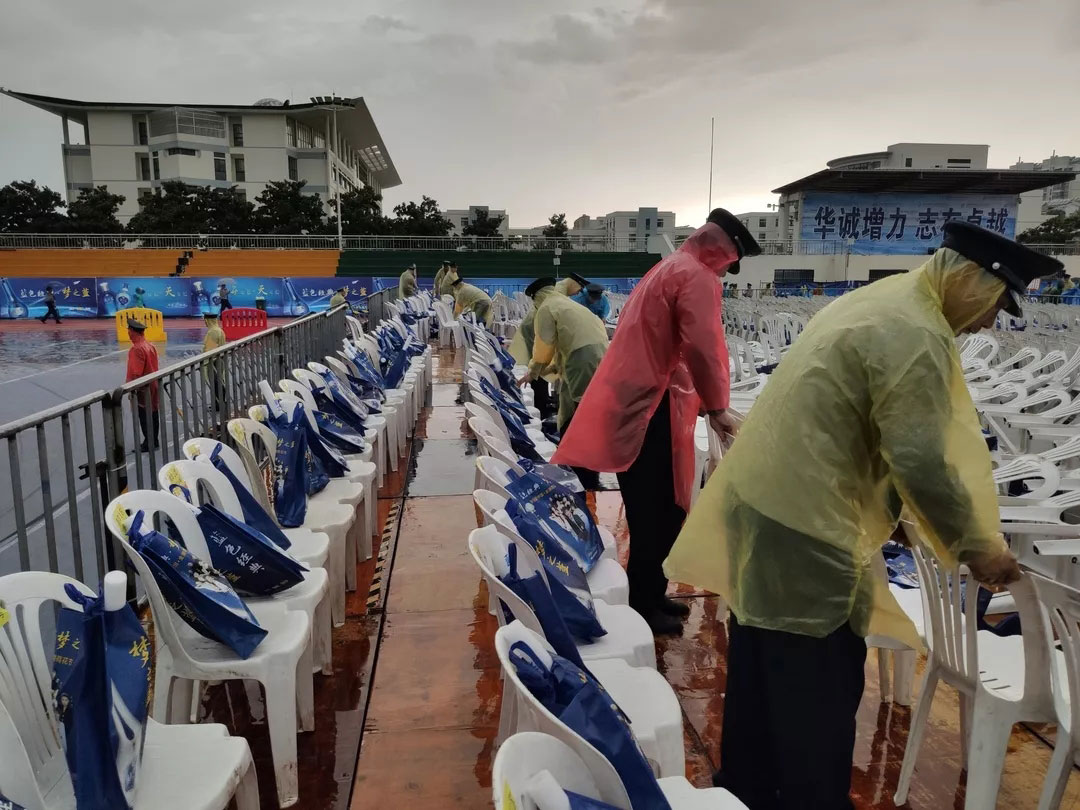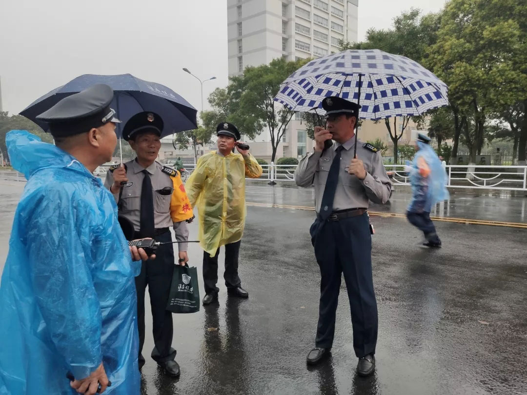 7月6日下午15點(diǎn),晚會(huì)現(xiàn)場(chǎng)暴雨來(lái)臨,降雨量已超100毫米,雨勢(shì)持續(xù),并伴有雷暴天氣。由于惡劣天氣影響,加上持續(xù)暴雨,部分道路積水嚴(yán)重,給觀眾入場(chǎng)帶來(lái)安全隱患??偣玖⒓磫?dòng)災(zāi)害天氣應(yīng)急預(yù)案,行政部門迅速出動(dòng),發(fā)放雨衣。人防管理中心組織全體保安隊(duì)員,在重要路口指揮疏導(dǎo),采取定人、定崗、定責(zé)的預(yù)防措施,全體保安隊(duì)員在暴雨中堅(jiān)守崗位,認(rèn)真做好崗位工作。