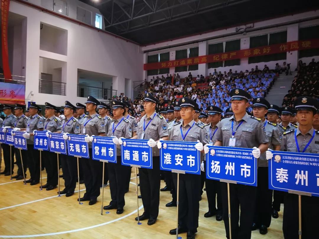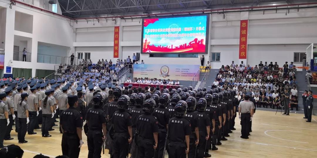 為更好的履行“保安勇?lián)?dāng),忠誠保大慶”主題活動(dòng),有力推進(jìn)和提升全省保安服務(wù)行業(yè)的人才隊(duì)伍建設(shè)、綜合業(yè)務(wù)技能和履職能力,更好地服務(wù)新中國成立70周年大慶安?;顒?dòng),9月16日下午3點(diǎn)30分,由省公安廳,省人社廳,省總工會(huì),共青團(tuán)江蘇省委主辦,江蘇省保安協(xié)會(huì)承辦的“江蘇省保安員職業(yè)技能競賽決賽開幕式暨全省保安行業(yè)服務(wù)保障國慶70周年安保誓師大會(huì)”在江蘇省司法警官高等職業(yè)學(xué)校(鎮(zhèn)江)舉行。全省13個(gè)地級市13支代表隊(duì)117名保安員參加了決賽。開幕式由江蘇省保安協(xié)會(huì)會(huì)長秦軍主持,公安部三局顧巖處長、中保協(xié)第一副會(huì)長劉紹武、江蘇省公安廳黨委副書記副廳長尚建榮、省人社廳副廳長朱從良、省總工會(huì)副主席井良強(qiáng)、團(tuán)省委副書記潘文卿、江蘇省監(jiān)獄管理局政治部主任袁誠、鎮(zhèn)江市副市長公安局長陳金觀等領(lǐng)導(dǎo)出席開幕式并講話。部分省、自治區(qū)、直轄市保安協(xié)會(huì)、公安機(jī)關(guān)分管領(lǐng)導(dǎo)和保安公司負(fù)責(zé)人參加安保誓師大會(huì)。淮安市公安局副局長唐衛(wèi)東、治安支隊(duì)政委顏志龍、巡特警支隊(duì)支隊(duì)長王彤、保安監(jiān)管大隊(duì)大隊(duì)長呂述山、淮安市保安服務(wù)總公司總經(jīng)理趙愛忠等領(lǐng)導(dǎo)參加了開幕儀式。開幕式上,全體保安人員,進(jìn)行了“保安勇?lián)?dāng),忠誠保大慶”集體宣誓。