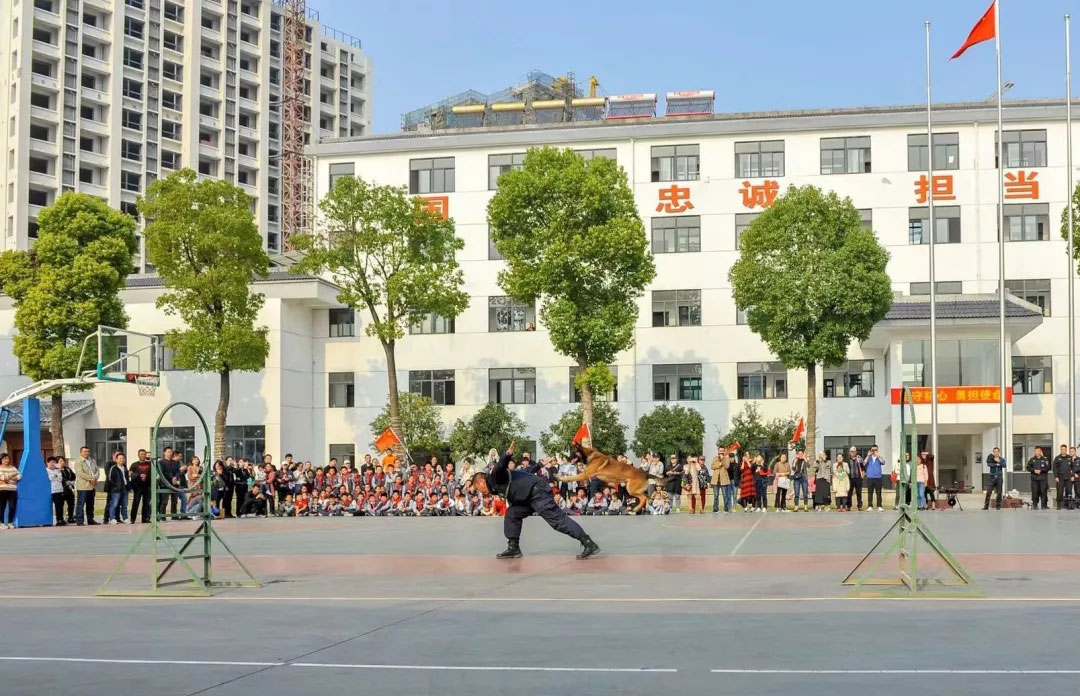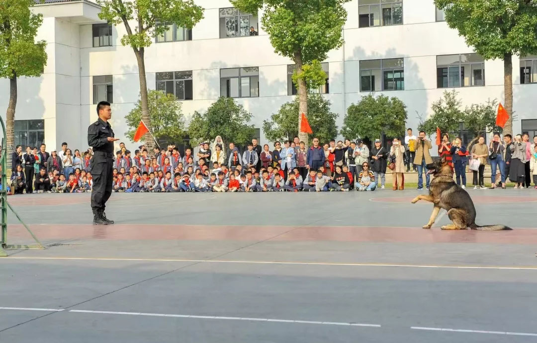 在警犬訓(xùn)練基地,訓(xùn)導(dǎo)員向?qū)W生們講解了警犬在搜救工作中發(fā)揮的重要作用。隨后精彩的警犬訓(xùn)練表演把活動推向了高潮:警犬在訓(xùn)導(dǎo)員的口令下,迅速準(zhǔn)確地做出相應(yīng)的基本動作和匍匐、后退、站立、跳躍等花式動作,還模擬了犯罪嫌疑人劫持人質(zhì),隊員果斷給警犬下達口令,接到口令的警犬猶如出膛的子彈,瞄準(zhǔn)該男子的右手飛撲著咬去,當(dāng)場控制了“犯罪分子”,解救了人質(zhì)。在場學(xué)生目不轉(zhuǎn)睛、連連歡呼。
