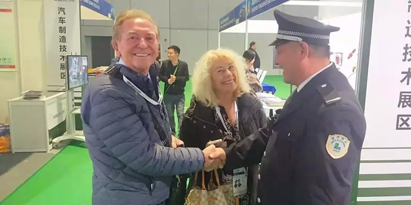 12月3日開館當(dāng)天,隊員陳得彬在6.1號館3門巡查時拾到一部手機,經(jīng)過尋找手機是兩位英國夫婦的,外國友人對陳得彬非常感謝,希望拍照紀念,臉上流露出滿意笑容。