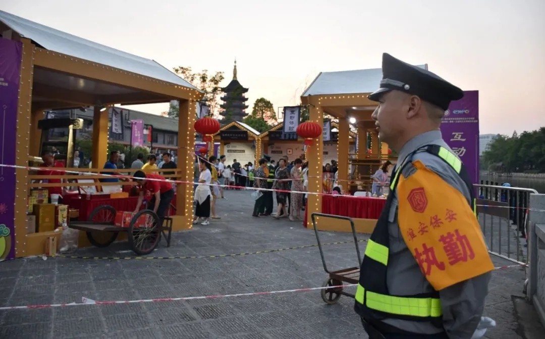 活動(dòng)期間,總公司共抽調(diào)保安力量600余人次,配合公安機(jī)關(guān)完成里運(yùn)河文化長(zhǎng)廊景區(qū)臨時(shí)區(qū)域管控、區(qū)域隔離設(shè)施設(shè)置、在活動(dòng)入口處對(duì)游客進(jìn)行安檢、體溫測(cè)量;根據(jù)景區(qū)內(nèi)人員流量情況,及時(shí)進(jìn)行疏導(dǎo)分流;維護(hù)展會(huì)現(xiàn)場(chǎng)秩序,及時(shí)處理各種突發(fā)事件。